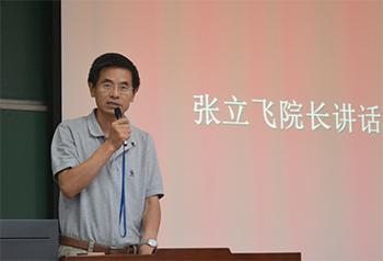 随后由张立飞院长进行致辞。张院长向新同学表示了热烈的欢迎,并代表学院向呕心沥血哺育学生的家长们表示祝贺。他先回顾了北大的历史,又简单介绍了地空学院的组成与成立以来的发展成果,希望同学们能够充分的利用北大丰富的资源,珍惜学习时光,志存高远,不负青春。张院长在讲话的最后送给同学们两句话:脚踏实地而努力,仰望星空而前行。他希望同学们能够踏踏实实地走好每一步,扎扎实实地做好每一件事并且树立并看护好远大的理想,培养孜孜不倦追求真理的精神。