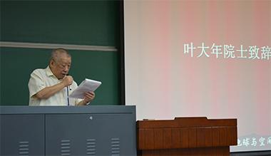 伴随着雄壮的国歌声,典礼正式开始。首先由院党委副书记于超美介绍与会的领导和嘉宾,随后叶大年院士进行致辞。叶院士虽已年迈,但他那气势高昂的声音却振奋人心。他从抗日战争胜利70周年开始说起,回忆了抗战时期的北大英雄人物,并强调历史需要传承,以此来激励同学们在大学四年中奋勇前行,不虚度年华,继承先辈精神,成为有担当的人。他还向所有新生表示能进入北大学习是一件幸福的事,但幸福只能当做一种兴奋剂,不能依靠一辈子;相反经历苦难才能让我们在人生道路上更好的前行。叶院士在讲话最后为全体新生提出了三点建议。第一,永远保持竞争意识,努力拼搏;第二,半部论语知天下,读书要精,重视必修的每一门课程;第三,制定切实可行的目标,并一步一步地为之奋斗。