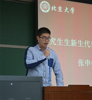 随后本科新生代表杨帆发言,她首先感谢了所有关心他们的老师和师兄师姐们,并表示一定要做到:修身养性、提升素质,脚踏实地、刻苦学习,尊敬师长、团结友爱,严于律己、遵守校规。然后是研究生新生代表张申健发言,他认为机会与选择才是北大给予我们的无价的财富,既然已经踏上地球科学的求索之路就要学会淡定从容,不断的学习,让自己拥有迎接困难的资本。2012级本科生刘松吟作为在校学生代表讲述了自己在地空的学习生活感受以及他自己对于北大人的理解,并对学弟学妹们进行了勉励。