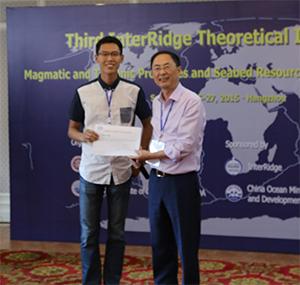 InterRidge(国际大洋中脊协会)是以促进各成员国洋中脊多学科研究及国际合作为宗旨的国际间学术组织,致力于创建一个全球性的海洋科学研究群体,规划和协调仅靠单一国家无法完成的科学研究方向和国际合作项目,加快科学信息交流,共享新技术和设备。本次研讨会主题为“洋中脊岩浆和构造过程及海底资源”,分为“洋中脊岩浆和构造过程”和“洋中脊海底资源”两个专题,来自中、美、法、英、德、日、俄罗斯等多个国家的海洋学研究人员作了大会报告与专题研讨。会议还包括短报告和展板环节,共评选出3名优秀学生报告,其他两位获奖者分别来自英国杜伦大学和日本东京大学。