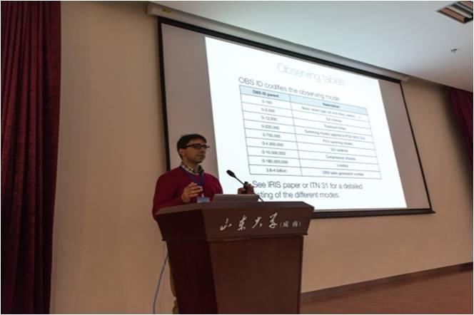 田晖研究员等讲授太阳紫外光谱诊断、IRIS科学数据分析、辐射转移理论、与IRIS科学目标相联系的宁静太阳大气和耀斑数值模拟等;二是邀请美国大熊湖天文台台长Wenda Cao教授、韩国首尔国立大学JongchulChae教授、日本国立天文台Joten Okamoto博士、南京大学程鑫副教授和云南天文台徐稚副研究员分别介绍新太阳望远镜(NST)、“日出”卫星(HINODE)、可见光与近红外太阳爆发跟踪望远镜(ONSET)以及新真空太阳望远镜(NVST),并讨论这些亚太地区的太阳观测设备与IRIS卫星之间的协同观测和数据共享;三是为亚洲地区的太阳物理学者提供一个学术讨论的平台,交流和研讨与IRIS相关的科研成果。IRIS卫星科学团队总负责人Bart De Pontieu博士通过视频连线向与会学者发表了热情洋溢的讲话,并期盼IRIS卫星与亚洲地区的太阳观测设备加强合作。