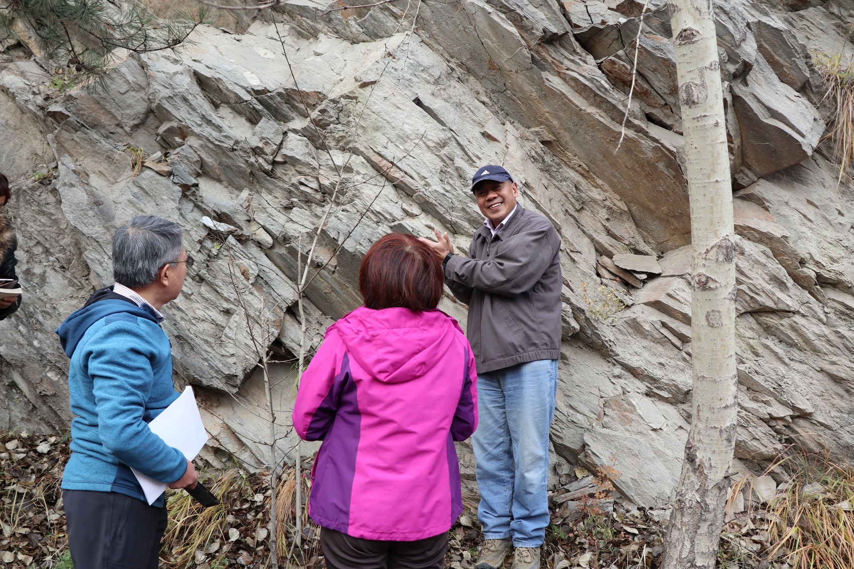 张海明 副教授:此次的地质考察对于地球物理专业的师生是个非常有益的学习机会。对于地质背景很弱的我来说,虽然很多具体的讲解听不太懂(比如涉及矿物组分的内容就一脸懵),但是如此近距离地接触一些此前仅存在于专业术语中的东西,比如断层,还是相当新鲜的。我想野外的地质考察对于地球物理学工作者的巨大意义就在于增加了对于所研究的对象的感性认识,避免了纸上谈兵和闭门造车的倾向。如果有可能,以后希望多组织类似的野外考察活动。对辛苦组织此次活动的老师以及给我们讲解的老师们表示衷心的感谢!