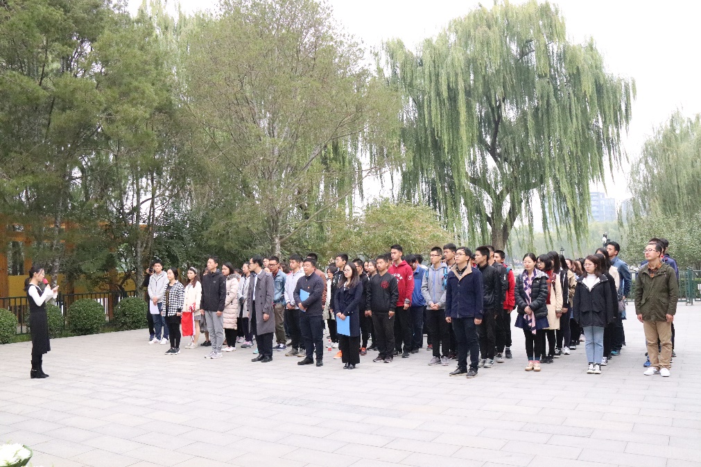 的重要讲话精神,引导教育北大青年重温党的伟大历史、继承党的光荣传统,不忘初心,砥砺前行,坚定“永远跟党走”的理想信念,地空学院团委和城环学院团委于10月21日在陶然亭公园高君宇烈士墓前,联合开展“学总书记的话,不忘初心跟党走”团校主题教育活动暨高君宇同志诞辰122周年纪念仪式。校团委副书记王一涵,地空学院党委委员、团委书记刘金秋,城环学院团委书记王宇凡、近100名学生党团员参与此次活动。活动由刘金秋主持。
