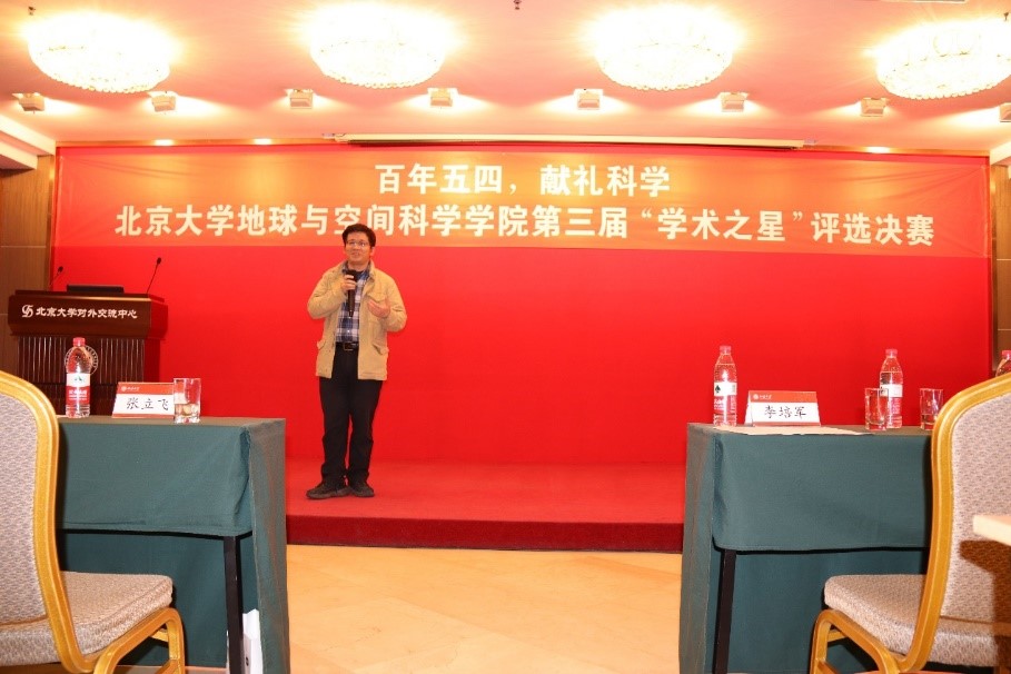 地空学院院长张立飞教授首先致辞。张院长谈到,研究生阶段的学习应从被动接受知识逐渐转变到主动获取知识,希望通过研究生学术之星活动,激发同学们的学术创新热情,加强学院内不同学科之间的学术交流,营造师生互动的良好氛围,推动肉视频研究生走向国际学术舞台。张院长同时强调,值五四运动一百周年之际,我们要回顾历史,致敬青春,时刻以爱国、进步、民主、科学的五四精神激励自己,立鸿鹄志、求真学问、做实干家,将五四爱国运动的火炬继承好、传递好,早日成为合格的社会主义建设者和接班人。最后,张院长向参赛选手表达了美好祝愿,希望各位选手能将北大的优良学术传统一届一届薪火相传。