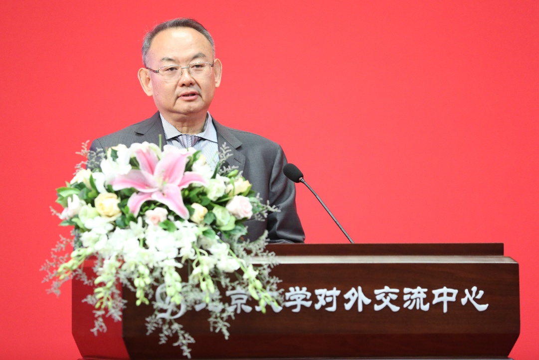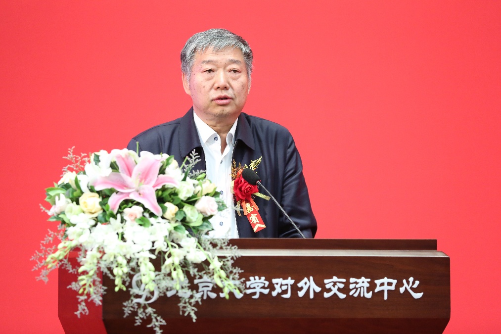 郝平校长讲话,他充分肯定了地质学系110年来取得的发展成就。他在回顾其110年发展历程时,用四个词形容地质学系:“历史悠久”、“大师云集”、“成果丰硕”、“前景远大”。他勉励地质学系师生在新时代,作为基础科学的重要组成、作为科技创新的重要领域、作为北大综合实力的重要体现,地质学系必须勇于担当、再立新功;并紧密围绕立德树人的核心使命,持续培养造就一批地质学领域顶尖的战略科技人才、科技领军人才、青年科技人才和高水平创新团队,让中国地球科学事业薪火传承、辉煌永续。