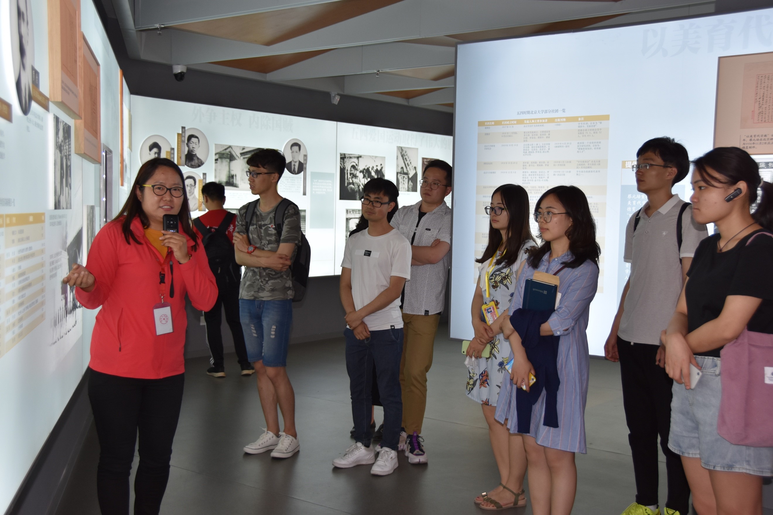 本次党团日活动共包括两个部分。第一部分是参观校史馆,在讲解员的带领下,同学们回顾和学习了五四运动百年历史和北大校史。穿越历史的长廊,北大师生的时代责任感,与国家同呼吸、共命运的使命感,一百二十多年来历久弥新。从马列主义传入中国,到中国共产党的诞生,再到新民主主义革命的胜利,一代代北大师生做出了卓越的贡献。