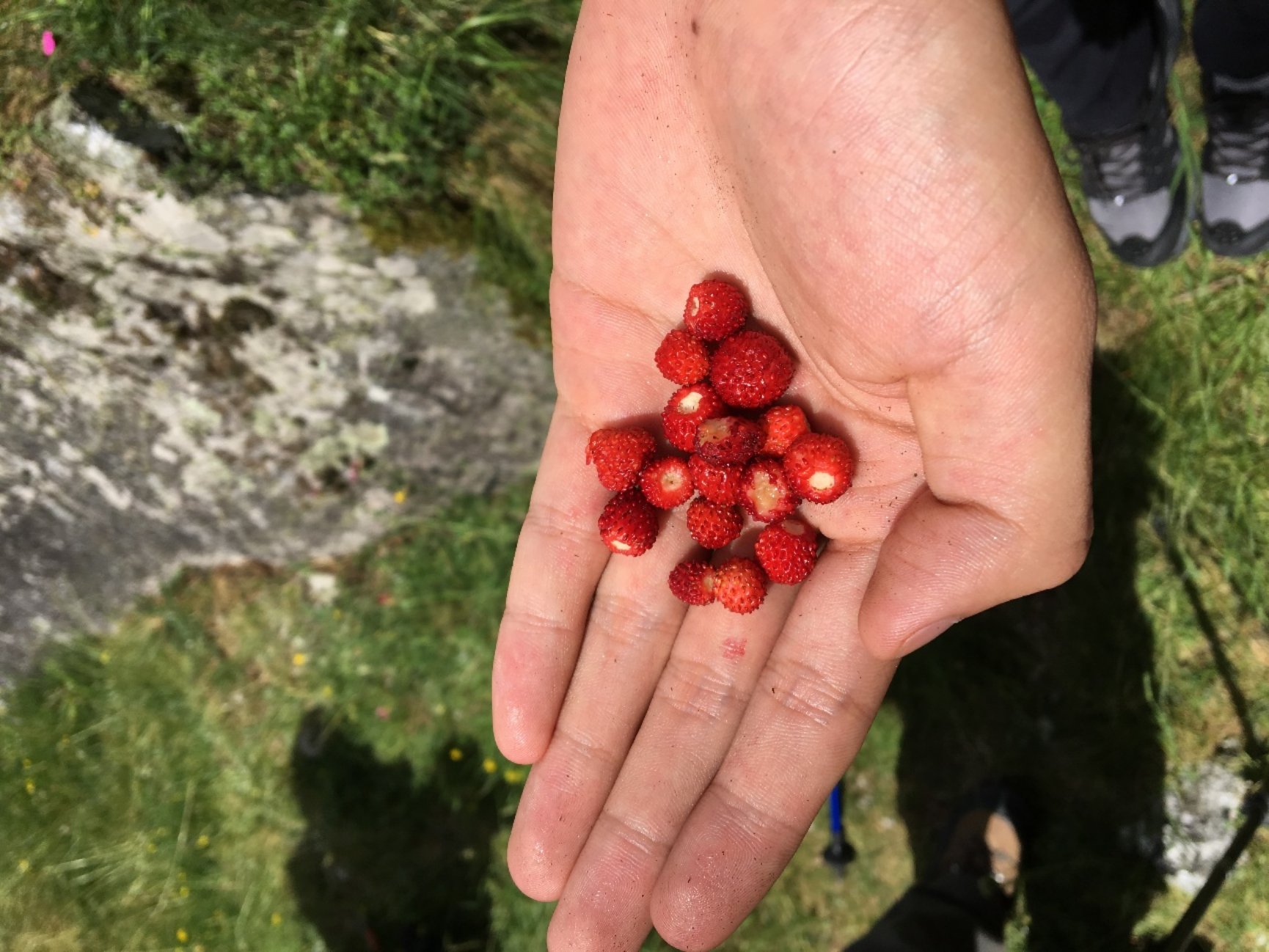 接近山顶时,行进路线上岩性出现明显变化,在Grumello断层两侧,二叠纪火山岩与三叠纪碳酸盐岩覆盖的植被全然不同,火山岩一侧山丘上长满了繁茂的野果与栗树,而碳酸盐岩上则以蕨类,灌木为主。火山岩基底的土壤中富含大量生物必需营养元素,碳酸盐岩营养元素较低,很难形成土壤。山脉南侧漫山遍野的葡萄园,意大利美味的红酒,都与其火山岩的地质基底密切相关。同学们在观察地质现象之余,也纷纷动手采摘果味。