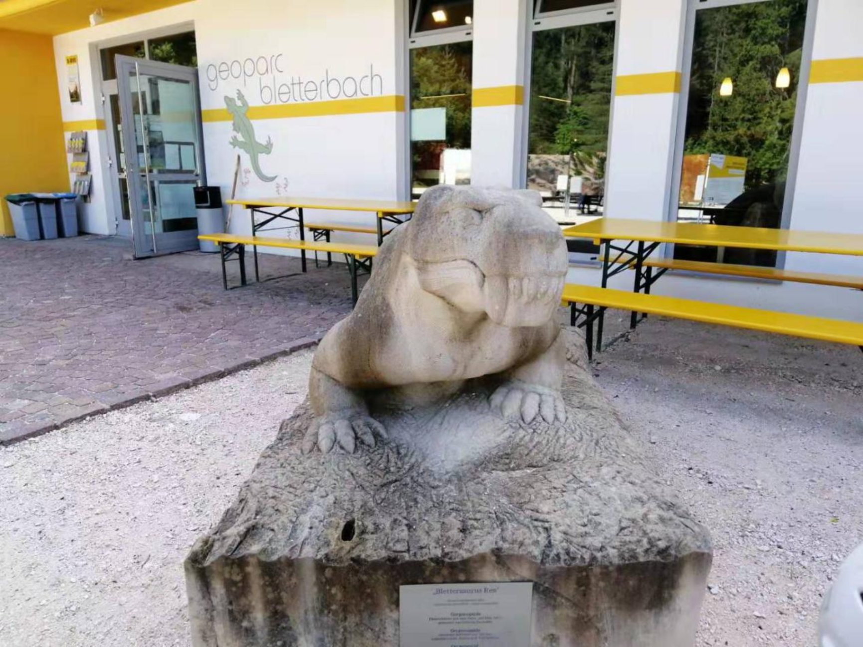 实习开始,一尊似哺乳类爬行动物雕像带领实习队的思维回到了遥远的中生代。恐龙与此类爬行动物最大的区别在于它们的站立姿势和行进方式。恐龙具有全然直立的姿态,更利于奔跑与行走。实习团队行进到河谷底部时,还在滚石上寻找、圈画此种动物足迹化石的印模,过程富于趣味。