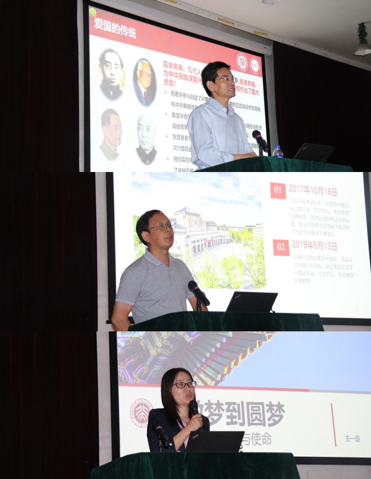 王一涵以“‘不忘初心、牢记使命’学生工作的初心与使命”为主题,从“生日会”、“挂科”、“就业”三个故事讲起,阐述了“关注每一个人,关心每一件事情,关怀每一个阶段”的初心和使命。结合同学们的成长发展,她分析了现有工作的不足,并最终引申到希望同学们能够回顾自己来到北大、地空的初心,理清每个人对自己、对家庭、对国家的使命,并积极承担自己应有的担当。