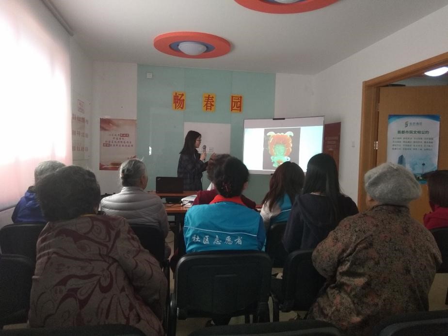 畅春园社区居住了很多独居空巢的退休老师,在精神上和生活中他们很需要关怀。2019年1月19日,支部党员参加了畅春园社区新年茶话会活动,同社区志愿者一同布置会场,和老人们拉家常,为社区老年人带来诗朗诵和二胡表演并送上节日的祝福。9月27日重阳节前夕,支部党员作为志愿者参加“桂花酿”活动,帮助和看望空巢老人,为他们送去温暖。