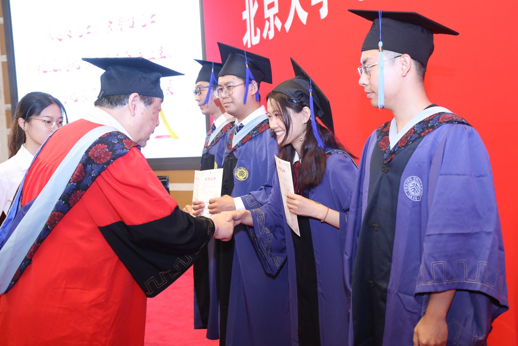 本科毕业生代表方景行回顾了与同学们朝夕相处的日子。聆听老师们的教诲,享受学院和学校的关怀,是她最美好的回忆。她号召大家,在离开北大乃至走向社会的过程中,要继续用“北大人”追求完美的精神和关爱他人的美德要求自己。
