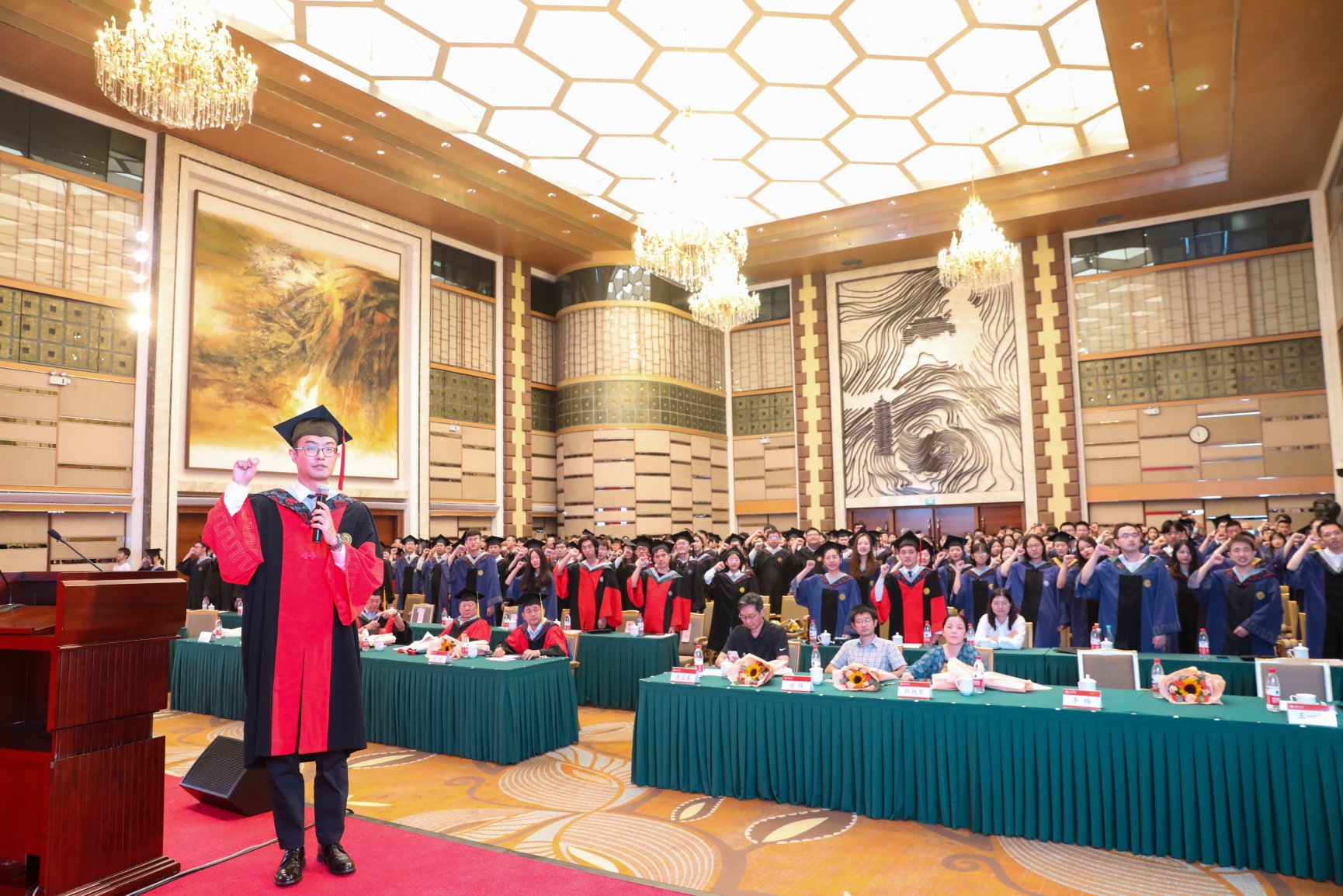 教师代表田晖老师用风趣幽默的话语总结了四条人生建议:“从零开始”,在新的岗位上刻苦努力,锐意进取;“追求卓越”,努力成为各自行业的顶梁柱或领路人;“谨慎社交”,多结交能帮助提升业务能力的真正朋友;“独立自主”,为自己的人生选择做决定,为自己的一切行为负责。