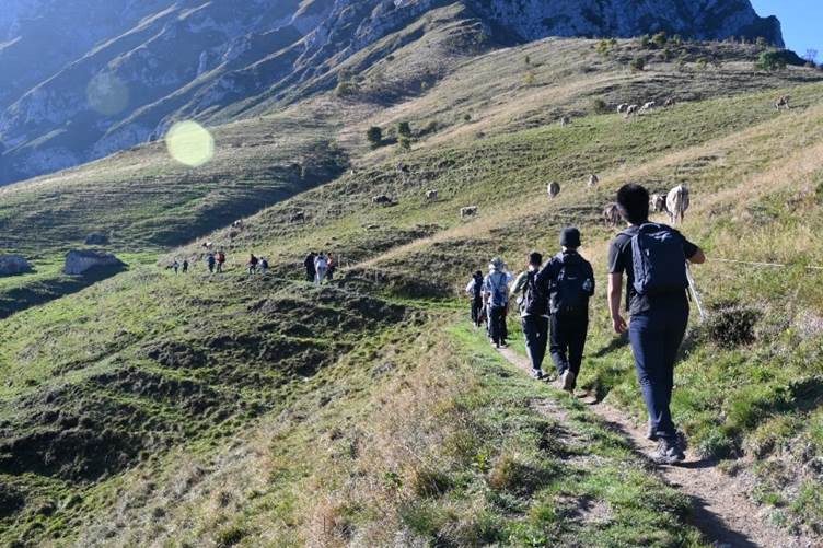 Grigna山的半山腰是一片较为平坦的草地,点缀以零星小巧精致的房屋。在此实习队短暂停留,完成了一顿匆忙的午饭。同时Andrea教授也向我们介绍了该处所经历的地质过程,以及前期地质活动塑造的地形与后期人类活动之间存在的紧密关系。