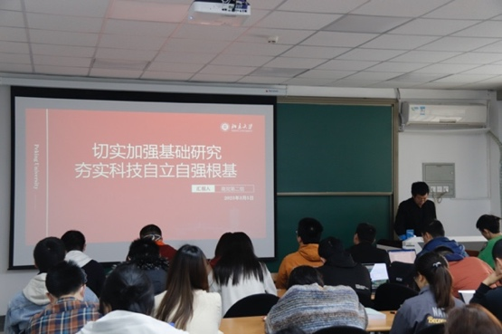 同学们认真观看大会直播,学习政府工作报告,并分六个小组展开讨论,选派代表分享心得体会。认真倾听同学们的交流发言之后,陈云超表示,经过党课学习,同学们的理论水平和政治素养都有了明显提高。他结合自身工作经历,对同学们提出四点希望:一是坚定理想信念,听党话、跟党走,将个人成长与国家发展紧密结合;二是加强道德修养,从做好小事起步,自觉树立和践行社会主义核心价值观;三是要有真才实学,珍惜时光、求知问学,努力成长为懂自己、懂社会、懂中国、懂世界的时代新人;四是主动担当有为,积极投身党团建设、志愿服务、社会实践,在行动中书写青春风采。陈云超希望同学们不仅要在组织上入党,而且要在思想上真正入党,在今后的学习生活中充分发挥党员先锋模范作用。