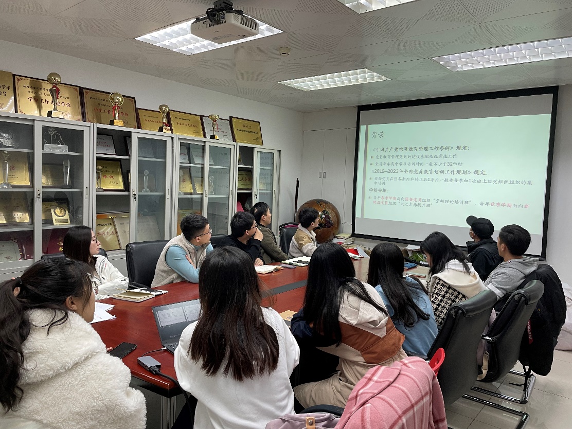 由于学院学生党支部本学期刚进行了结构上的调整,本次会议上各党支部还汇报了本学期工作情况和工作计划。高君宇学生党支部通过建立活动、材料、宣传等不同任务内容的工作小组,让每位党员和积极分子都在支部内有所承担;地化研究生党支部、岩矿材料博士生党支部、石油博士生党支部通过与外单位党支部以及团支部深度联合共建,丰富活动内容,拓宽党员视野;构造研究生党支部着重探索党小组分工、考勤等支部内制度建设;史前生命与环境研究生党支部、地球物理研究生党支部依托不同课题组划分党小组,开展专业特色活动;遥感博士生党支部、遥感硕士生党支按照年级划分党小组,开展服务毕业生、服务专业教师等特色活动;岩矿材料石油硕士生党支部通过制作政治生日贺卡等形式,加强党支部活动的仪式感。
