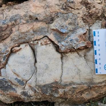 路边堆砌的石头矮墙中,我们发现了一块有着硅质外壳的转石,它似乎在向我们述说着岁月的漫长:深海洋底的开裂带来了地球深部的热液流体,生活在附近的海绵吸收着丰富的钙质和硅质茁壮生长,借助这些物质搭建着自身的骨骼。被埋藏的海绵以岩石的形式继续延续,这一岩石的钙质硅质组分在更深一级规则的控制下发生互相分离,形成二元式的聚集样貌。