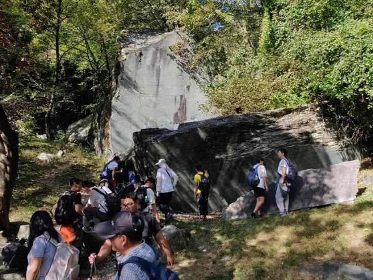 沿着崎岖山路继续前行,充满绿荫的小径将我们带到世外桃源,在这里我们看到几亿年前的自然作用与逾百年前的人类活动交叠在一起的奇特景象:在Molinata山谷,可以看到自十九世纪末至二战初期的采石场遗址,原料即来自于此处巨大的,约18000年前被冰川作用搬运而来的蛇纹岩漂砾。