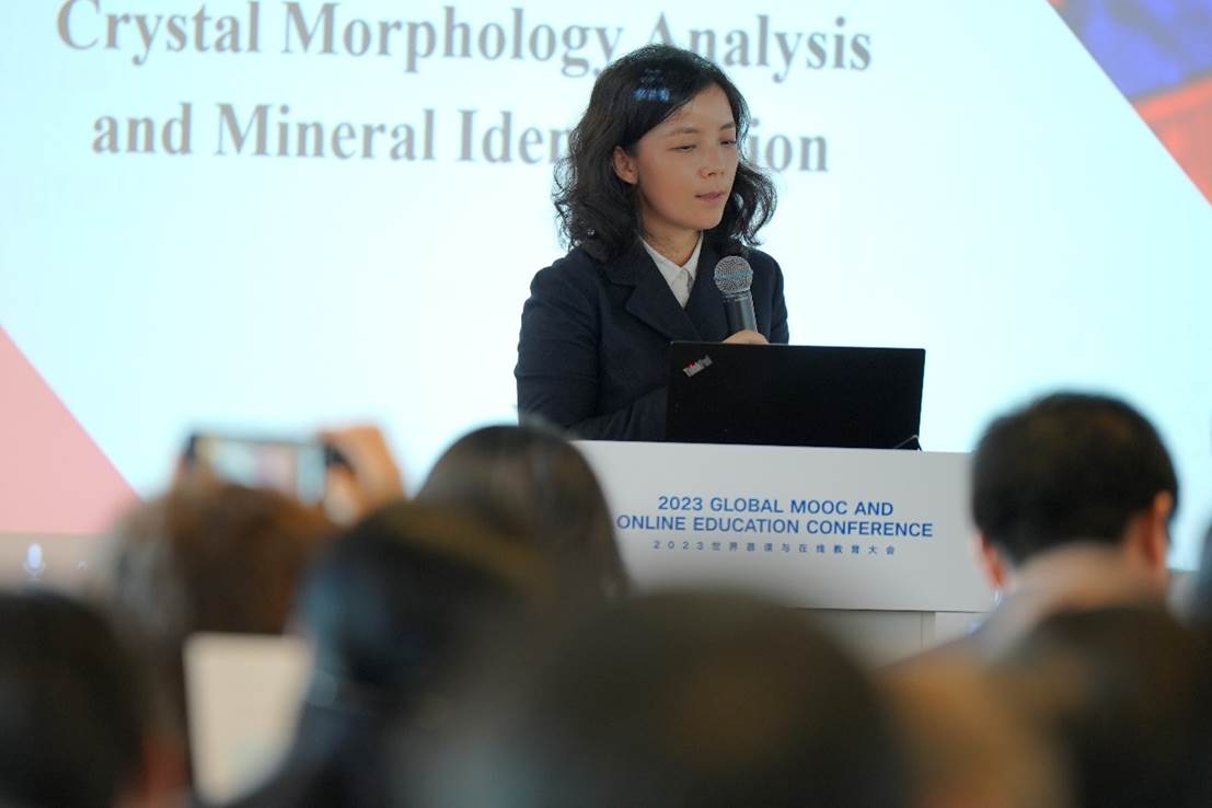 《晶体形态分析与矿物鉴定虚拟仿真实验教学课程》获2023世界慕课和在线教育联盟奖。展涛和世界慕课与在线教育联盟秘书长,清华在线教育中心主任汪潇潇为获奖的负责人代表、地球科学国家级实验教学示范中心(禁漫