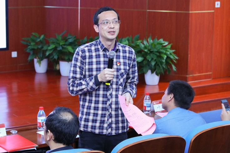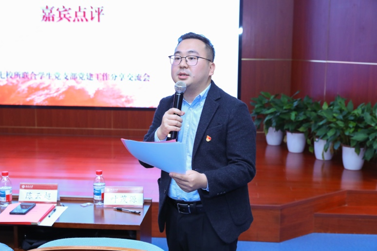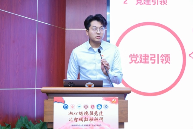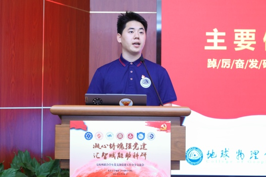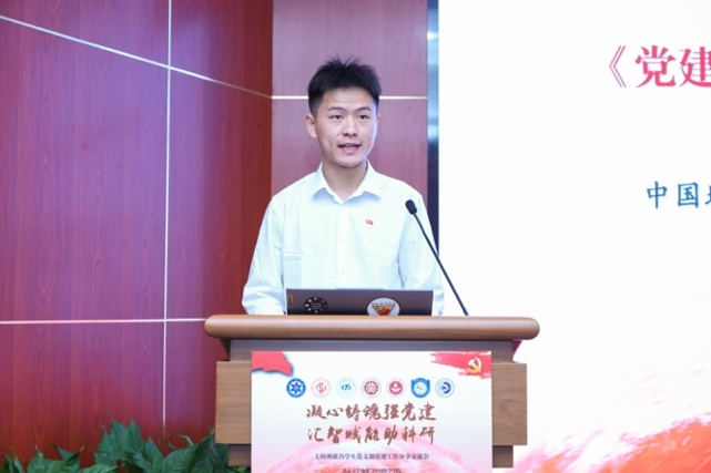 地球物理研究生党支部袁源以《追光不辍强国梦,党旗引领谱华章》为主题,分享了党支部以李四光精神为引领,聚焦“课程思政、科普宣讲、科研攻关、校地合作”开展的一系列党建工作。