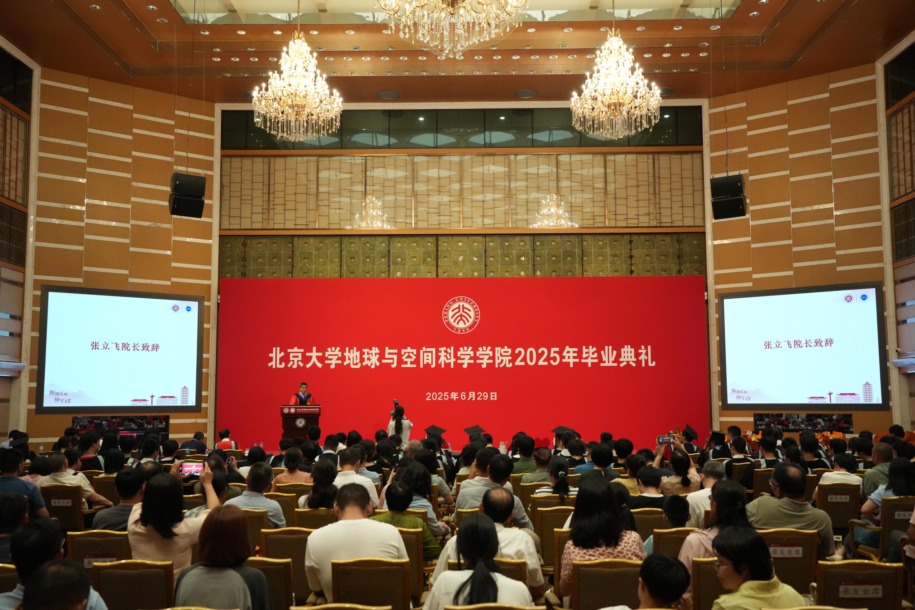张立飞在致辞中介绍了学院在人才培养、学科建设等方面取得了令人瞩目的发展。他指出,同学们在北大的求学岁月里不仅接受了专业教育,更培养了宽广的学术视野和深厚的人文底蕴。临别之际,他与同学们分享了三点心得:传承“兼容并包”的学术品格,践行“实事求是”的治学精神,担当“经世致用”的时代责任。他勉励毕业生们怀揣着“未名博雅,家国天下”的北大情怀和“脚踏实地,仰望星空”的地空精神,在各自选择的道路上勇敢前行,为民族复兴和祖国建设贡献青春力量。