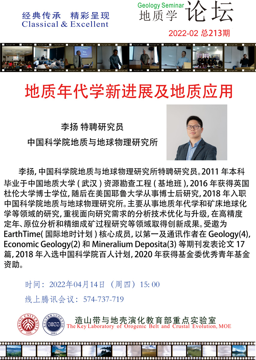 李扬,中国科学院地质与地球物理研究所特聘研究员。2011年本科毕业于中国地质大学(武汉)资源勘查工程(基地班),2016年获得英国杜伦大学博士学位,随后在美国耶鲁大学从事博士后研究,2018年入职中国科学院地质与地球物理研究所。主要从事地质年代学和矿床地球化学等领域的研究,重视面向研究需求的分析技术优化与升级,在高精度定年、原位分析和精细成矿过程研究等领域取得创新成果。受邀为EarthTime(国际地时计划)核心成员,以第一及通讯作者在Geology(4),Economic Geology(2)和Mineralium Deposita(3)等期刊发表论文17篇,2018年入选中国科学院百人计划,2020年获得基金委优秀青年基金资助。