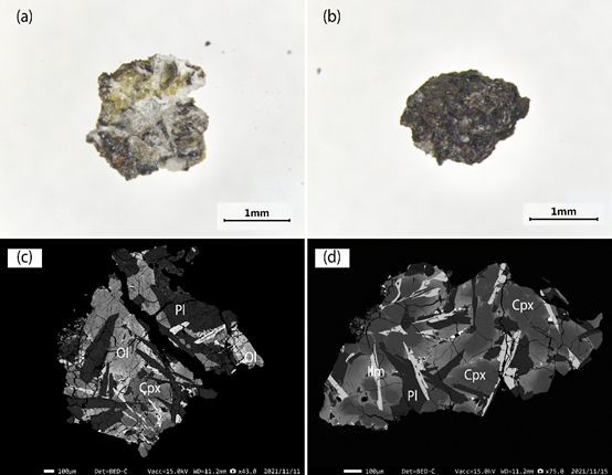 2 嫦娥五号月海玄武岩的岩相学。Ol=橄榄石,Cpx=单斜辉石,Pl=斜长石。
