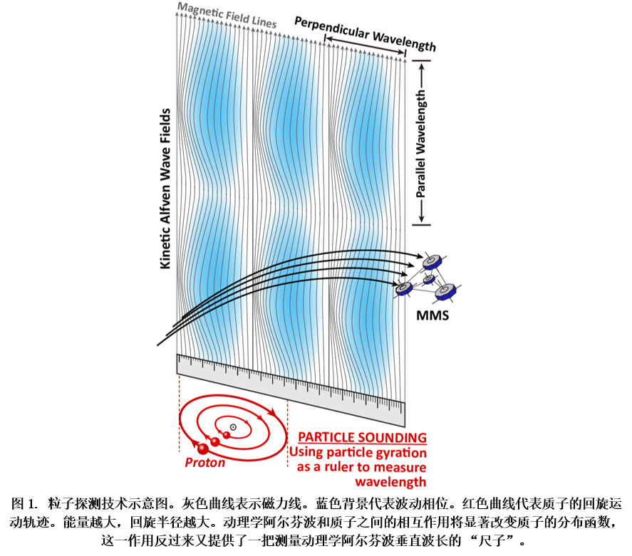 如图1所示,该方法的原理是利用不同能量的离子具有不同的回旋半径,从而形成了一种测量波动垂直波长的“尺子”。基于这一原理,该方法被称为粒子探测技术(particle-sounding technique)。