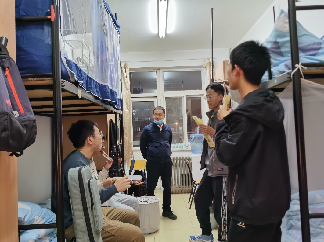 开展本科生宿舍慰问走访活动。11月5日、11月9日晚,2018级班主任法文哲、盖增喜,2019级第二班主任叶威惠,第二班主任代表任一丁,2020级班主任崔要奎,2021级班主任周煦之、孙作玉、覃建旗与本科生全体辅导员赴本科生宿舍开展走访慰问活动。