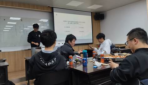 活动第二阶段,全体同学同学分为了五个小组,进行了党的知识竞赛活动,同学们积极活跃参加,知识竞赛活动旨在更进一步走近党的百年奋斗历程,学习艰苦奋斗精神,感受共产党员生命温度,接受党性教育,进一步提升党史学习教育成效。知识竞赛活动中,同学们遇到存在争议的答案,积极借助手机在网上寻找相关文献资料,如中国共产党成立时间到底是1921年7月1日还是7月23日。原来,中国共产党第一次全国代表大会召开时间和党的诞生纪念日并不一致,毛泽东同志于1938年5月第一次提出把7月1日作为党的诞生纪念日,尽管如此,“七一建党节”这个光辉的节日已经深深铭刻在了全党和全国各族人民的心中,已经内化成了中国节日文化的一部分,时刻提醒着广大新时代北大新青年坚定理想信念,践行共产党员的初心使命,为实现新时代党的历史使命奋力前行,不懈奋斗!