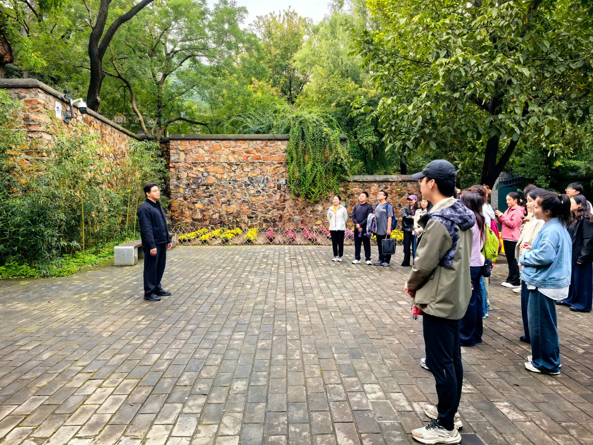 在讲解员的引导下,党员同志们进入双清别墅内瞻仰革命旧址,在六角红亭前重温“协商建国”的历史抉择。随后,党员同志们前往来青轩,瞻仰朱德、刘少奇、周恩来、任弼时等老一辈革命家的办公居住地。