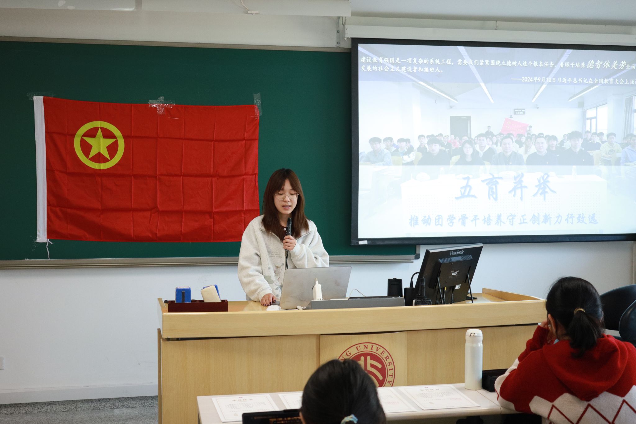 庞萃芸向新学员们分享了她在团校学习时的收获和感悟。她讲道,团校不仅教给学员们丰富的理论知识,还通过丰富的实践活动,搭建起理论和实际的桥梁。在团校中收获的技能不仅在团学工作中大有裨益,还将成为学员们未来成长的宝贵财富。
