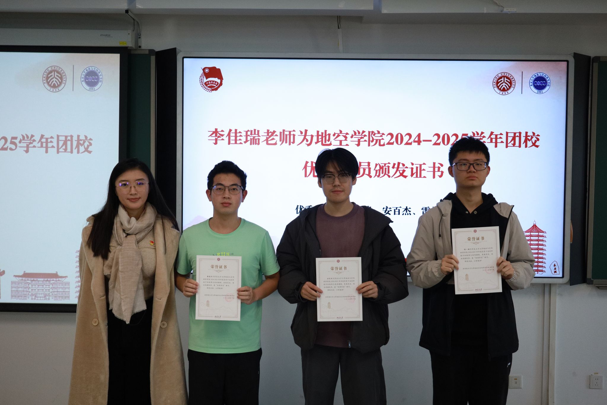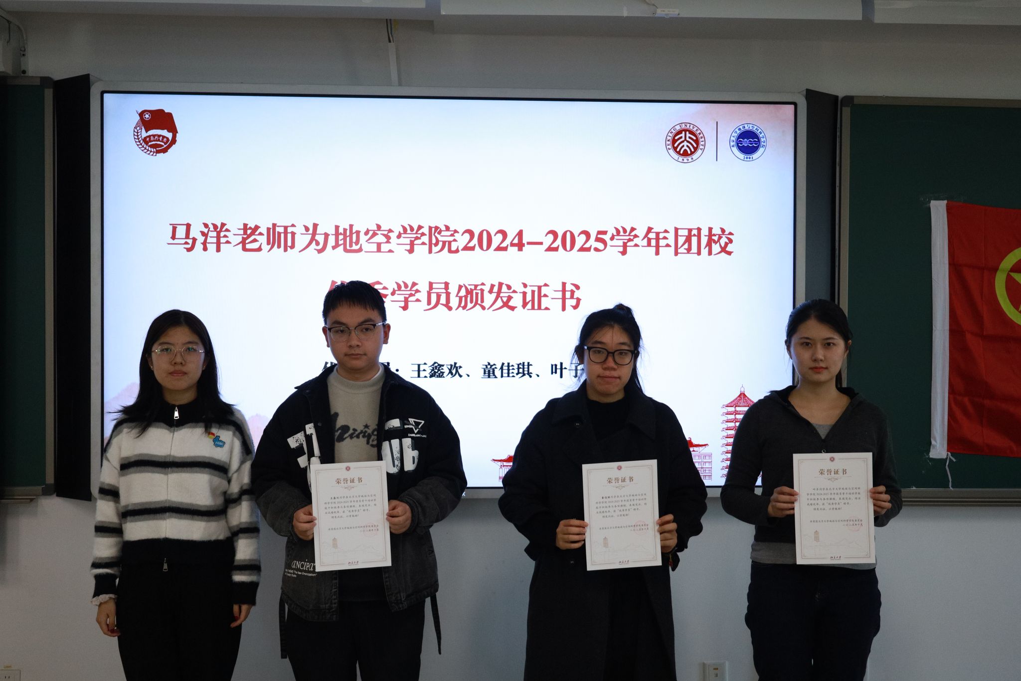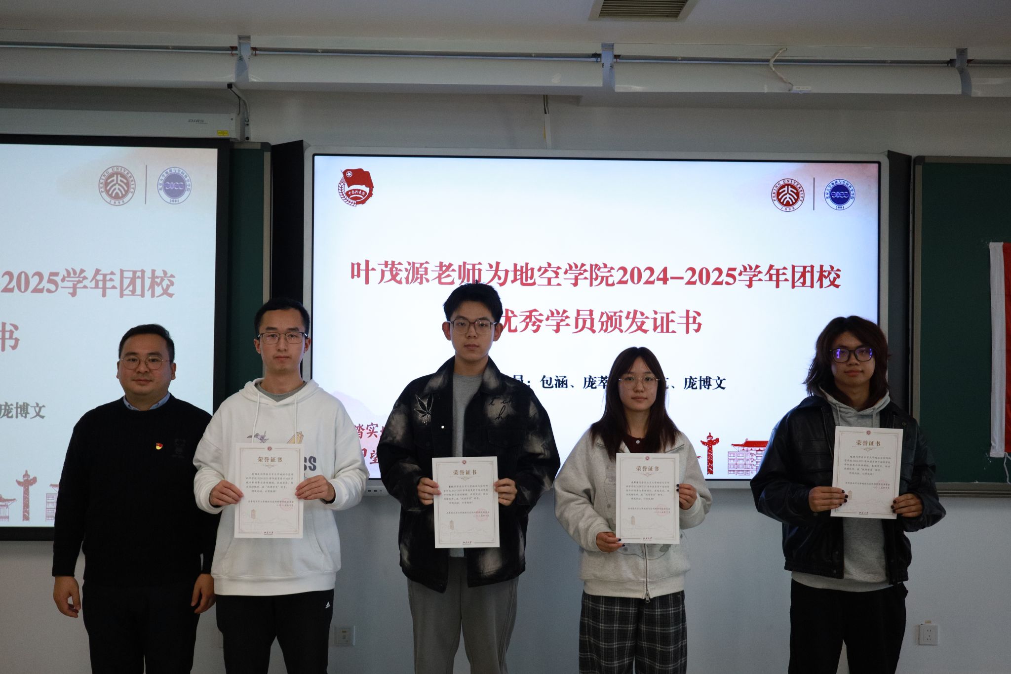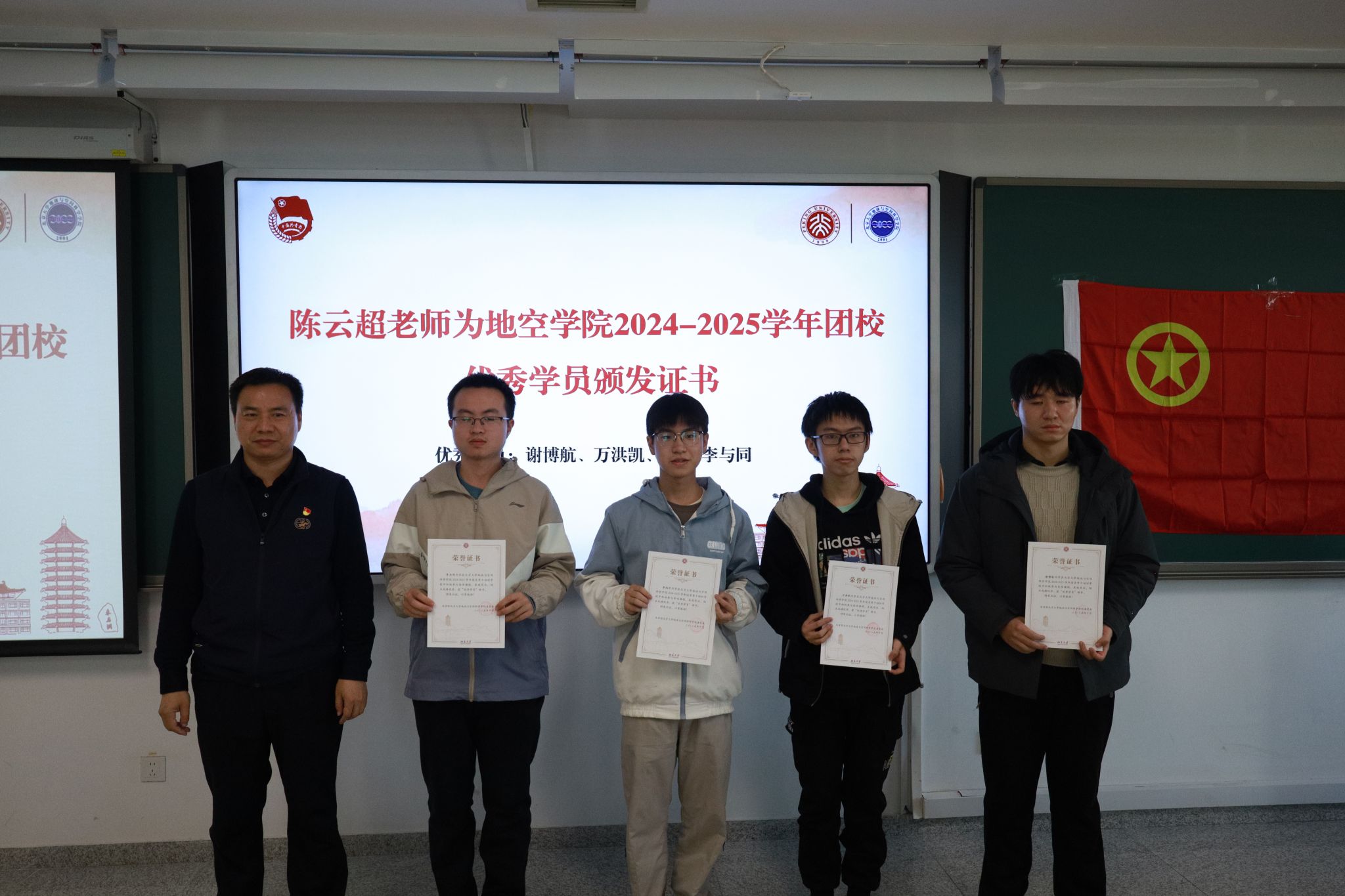 2024-2025学年度共有32位团校学员被评为优秀学员,陈云超、叶茂源、李佳瑞、马洋分别为到场的优秀学员代表颁发荣誉证书。