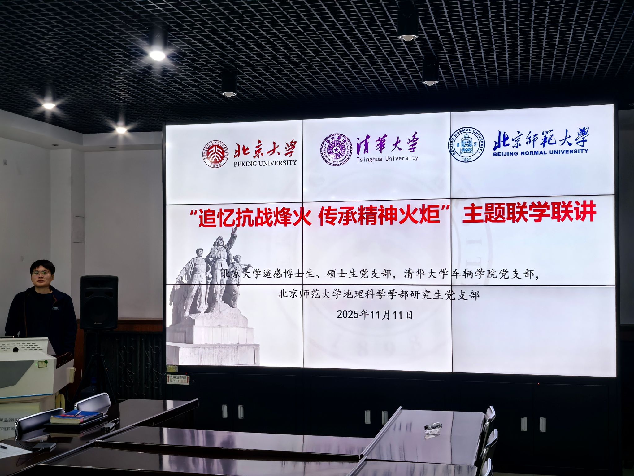 遥感博士生党支部联合遥感硕士生党支部、清华大学车辆与运载学院车辆博22、博21、硕23、博5党支部以及北京师范大学地理科学学部第十一、十七、十八党支部,开展了“追忆抗战烽火,传承精神火炬”主题联学联讲活动。