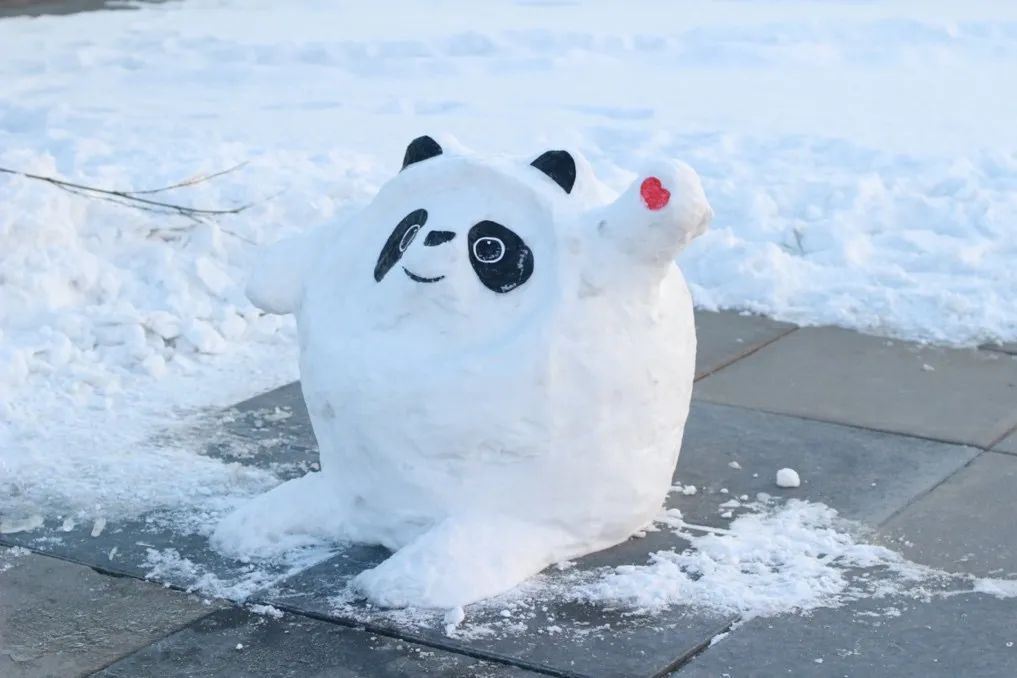 2022年2月13日,北京迎来了农历新年第一场大雪,积雪为冰立方表面的晶块盖上了一层层“糖霜”,观众和志愿者们都十分激动,纷纷为雪景驻足拍照合影。身穿蓝色羽绒制服、头戴起雷锋帽的志愿者们,在广场上堆冰墩墩雪人、打雪仗。