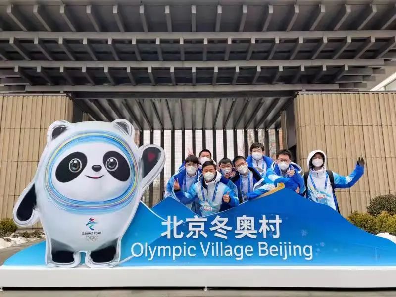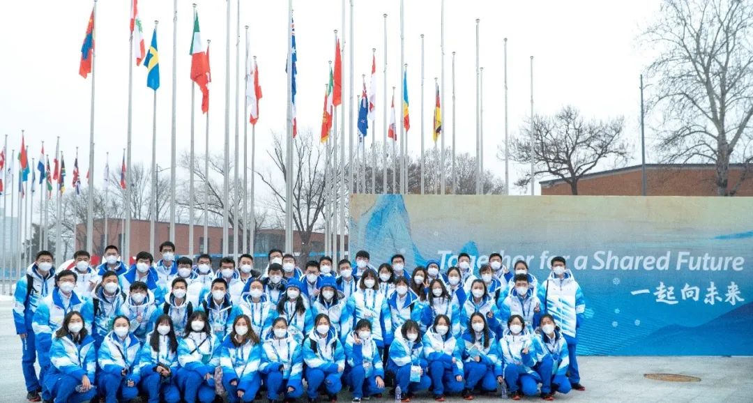 志愿者们在冬奥村前的合照