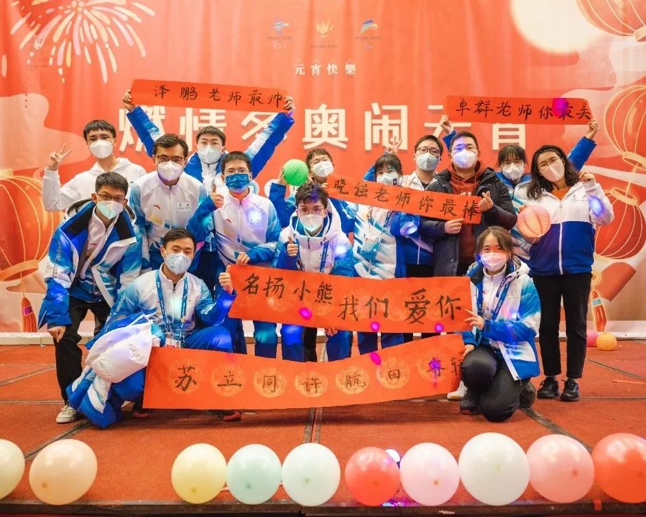 除了工作,冬奥志愿老师和同学们的相互陪伴,让郭鹏的志愿者生活有着别样的温暖。除夕那天师生的同台唱歌、演出和新年钟声下的声声祝福都让他对这个除夕无比难忘。那句来自家人的“郭鹏,加油,我们为你和你的小伙伴感到骄傲!”更是让他热泪盈眶。驻地里那群爱整活儿的“气氛组”、不同院校师生一同唱响的生日歌、还有无比难忘的元宵节晚会,都在郭鹏脸上写满了怀念,也表达了他对志愿团队的无比热爱。冬奥志愿期间,不管什么时间、什么活动,郭鹏身边总会有熟悉的伙伴和老师们陪伴的身影,他们始终是一个团队,彼此温暖,共同前行。志愿服务取得的成绩不只属于某一个人,而是属于团队中的每一名志愿者。