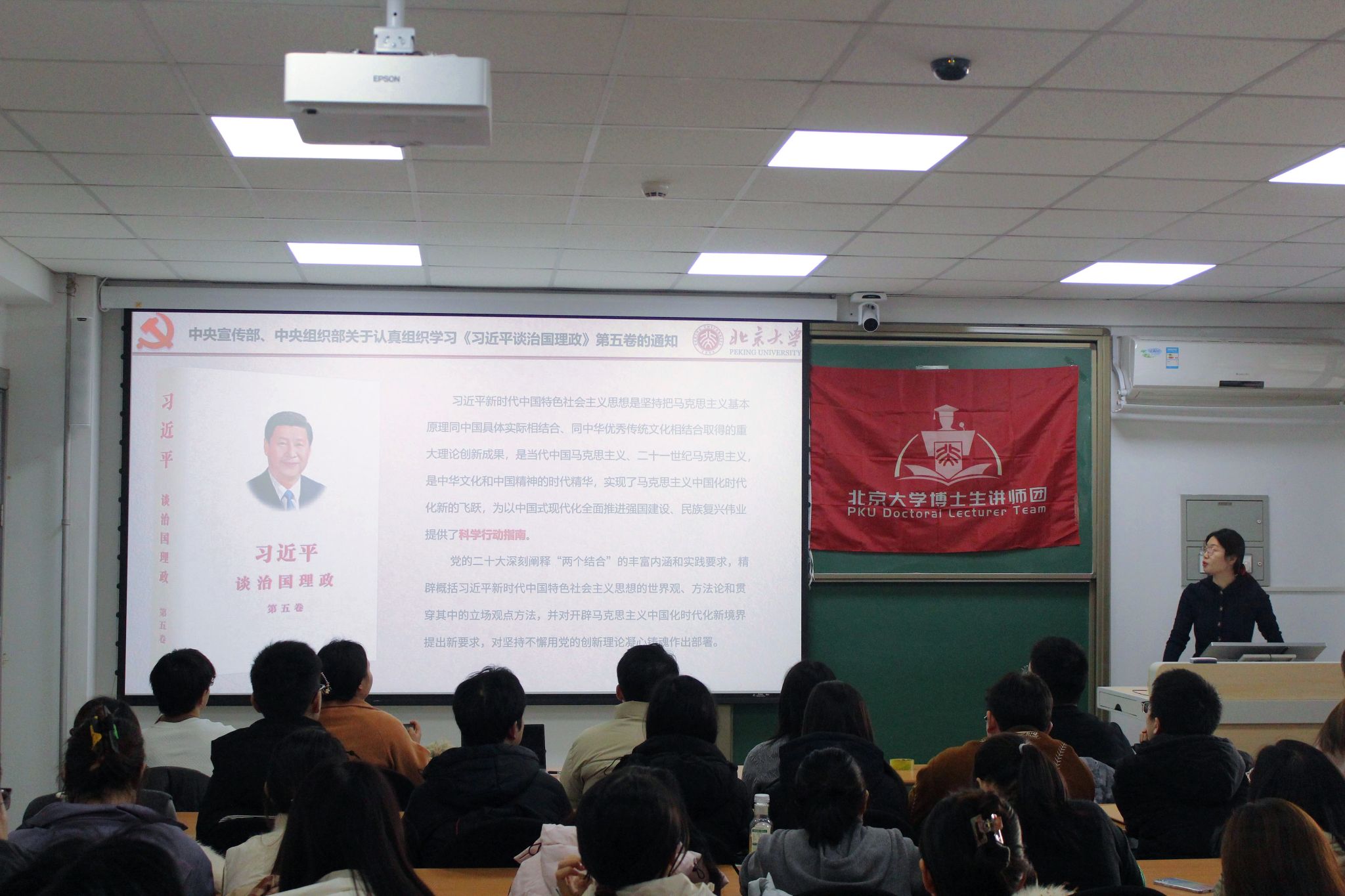 地空学院古生物硕博团支部书记刘飞扬领学《习近平谈治国理政》第五卷。她深入剖析了习近平新时代中国特色社会主义思想的世界观和方法论,并探讨了如何在新时代继续推进党和国家的全面发展,特别是如何在复杂的国内外局势中推动社会主义现代化建设。