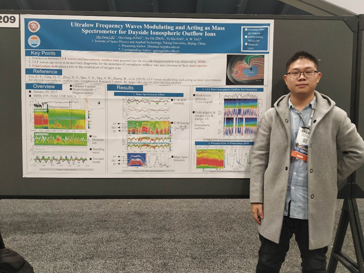 空间物理与应用技术研究所的各种空间探测项目。一方面,他积极出现在“台前”,利用研究所自主研发的空间探测仪器返回的数据研究空间天气,探讨各种空间天气现象的表现和成因。比如他曾利用搭载于导航卫星上的北大中能电子谱仪返回的数据,详细研究了亚暴能量电子注入锋面事件。通过这一观测工作,他发现亚暴注入锋面应该起源于同步轨道附近,和之前的猜测不符,对传统理论提出了挑战。另一方面,他还深入“幕后”,参与了多个仪器的数据校正工作,例如风云三号E星上搭载的波动磁场仪。和传统设计不同,这一仪器紧贴卫星表面。虽然这样的设计更加节省资源,但也使得仪器极易受到卫星剩磁的干扰。刘志扬和研究所的其它老师同学通力合作,开发了一种反演算法来从观测数据中去除卫星剩磁信号。这一方法大获成功,成功地分离了真实信号和噪声,拓宽了数据的适用范围。