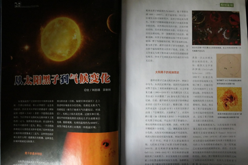 前沿科学不应只局限在实验室,还应散播于街头巷尾。在完成科研任务之外,刘志扬还积极参与科普活动,根据时事热点撰写科普文章,将学界前沿介绍给普通受众。例如,他曾以《从太阳黑子到气候变化》为题在《气象知识》杂志上发表文章,为大家介绍目前学术界关于太阳活动和气候变化联系的认识。虽然相关理论既前沿又复杂,但他紧跟时事的选题和深入浅出的讲解获得了读者的一致好评。这篇科普文章最终获得了《气象知识》杂志2019年优秀文章一等奖(1/2)。这个奖项不仅是对其过往工作的肯定,也是对他继续投身科学传播的鼓励。