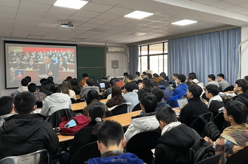 同学们认真观看大会直播,学习政府工作报告,并分六个小组展开讨论,选派代表分享心得体会。认真倾听同学们的交流发言之后,陈云超表示,经过党课学习,同学们的理论水平和政治素养都有了明显提高。他结合自身工作经历,对同学们提出四点希望:一是坚定理想信念,听党话、跟党走,将个人成长与国家发展紧密结合;二是加强道德修养,从做好小事起步,自觉树立和践行社会主义核心价值观;三是要有真才实学,珍惜时光、求知问学,努力成长为懂自己、懂社会、懂中国、懂世界的时代新人;四是主动担当有为,积极投身党团建设、志愿服务、社会实践,在行动中书写青春风采。陈云超希望同学们不仅要在组织上入党,而且要在思想上真正入党,在今后的学习生活中充分发挥党员先锋模范作用。