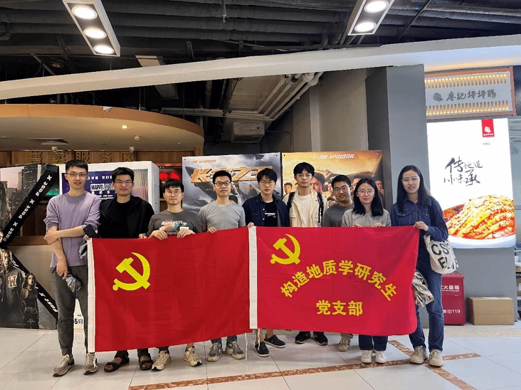 2023年5月12日,构造地质学研究生党支部第二党小组联合构造地质学研究生党支部团支部前往金逸影城集体观看电影《长空之王》。《长空之王》讲述了中国新一代试飞员,参与尖端新式战斗机的试飞工作,在不断挑战战机和自我极限的过程中成长的故事。