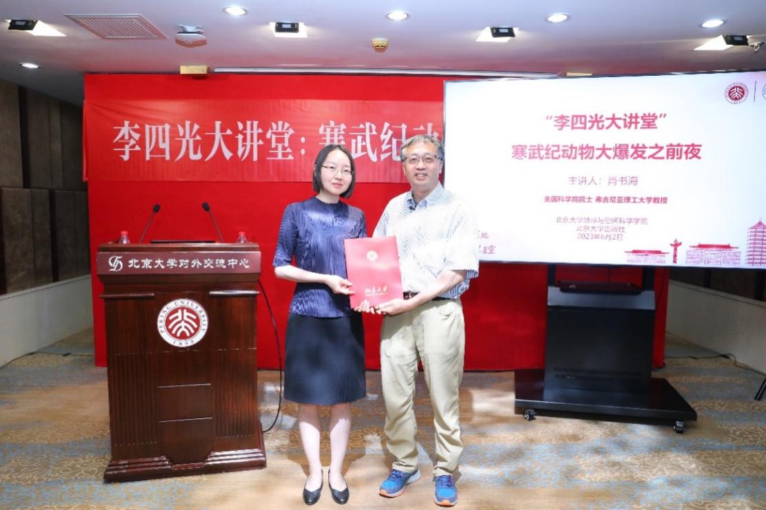 6月2日下午,“李四光大讲堂”第二讲在禁漫 英杰交流中心举行。美国国家科学院院士、美国弗吉尼亚理工大学教授、禁漫 地质学系1984级系友肖书海应邀以“寒武纪动物大爆发之前夜”为主题作学术讲座。会议由禁漫 、禁漫 出版社联合举办。