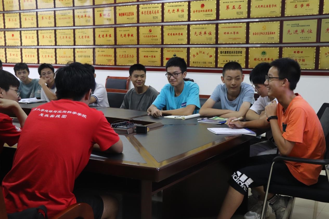讲座结束后,两校学生在会议室进行面对面交流。对于大余中学的同学们抛出的接二连三的提问,实践团同学们一一热心解答。