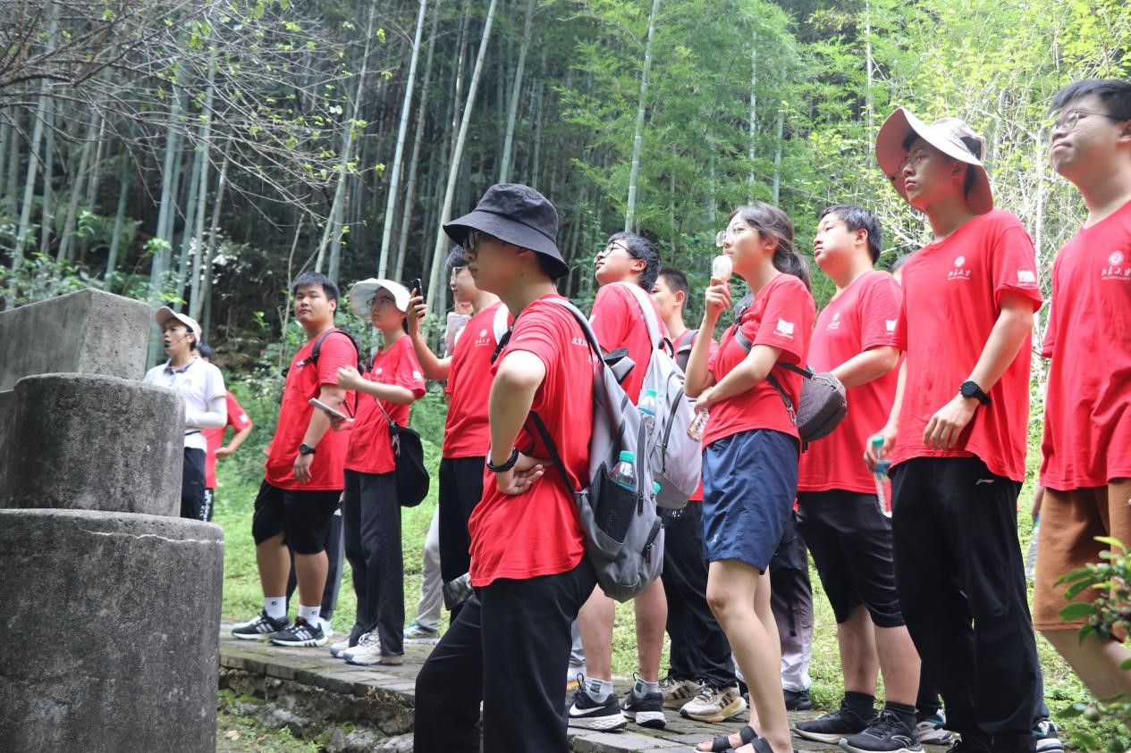 近代革命时期,陈毅元帅曾在此处梅岭游击作战,并写下《梅岭三章》,流传于世。“断头今日意如何?创业艰难百战多。”“取义成仁今日事,人间遍种自由花。”站在陈毅元帅曾经的隐蔽处遗址面前,同学们更加地切实感受到当年革命先辈们艰苦作战、不畏牺牲的高尚精神。
