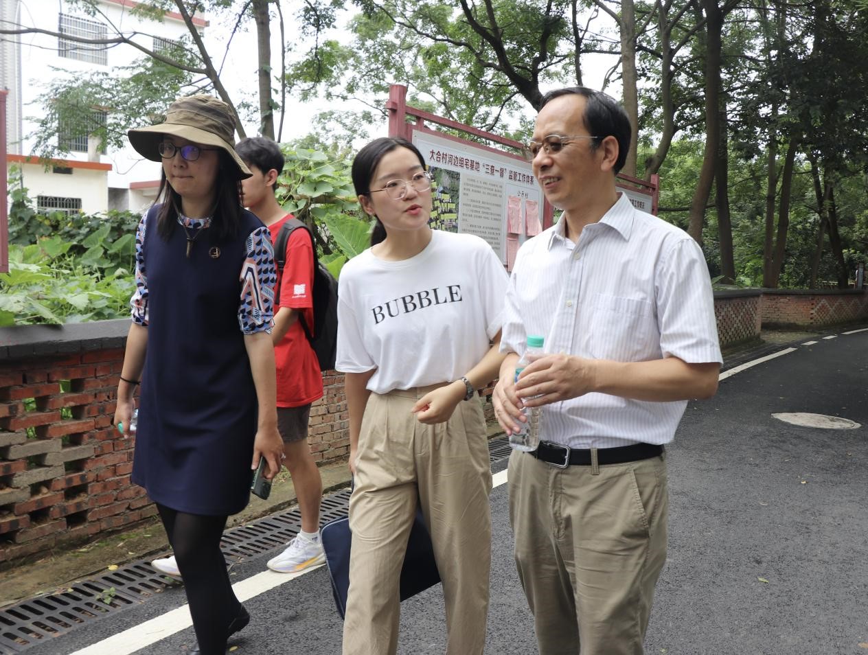 参观完大丫山景区后,实践团共同前往了大合村,参观乡村振兴示范点、产业基地,在当地负责人的带领下,同学们参观了宅基地、古码头遗址、当地祠堂。宅基地作为农村村民用于建造住宅及其附属设施的集体建设用地,要严格落实"一户一宅"规定,农村村民一户只能拥有一处宅基地,大合村采用科学合理的制度,对占有宅基地面积大的村民实行阶梯式收费,保障了农村宅基地的合理分配使用。