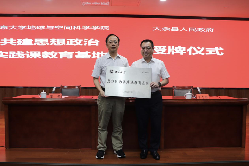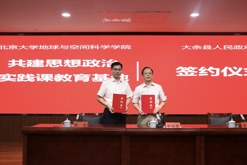 思想政治实践课教育基地”签约暨授牌仪式在该馆内举行。北大地空学院党委书记李培军代表北大地空学院与大余县人民政府签约,协议共建“思想政治实践课教育基地”,并为基地授牌。
