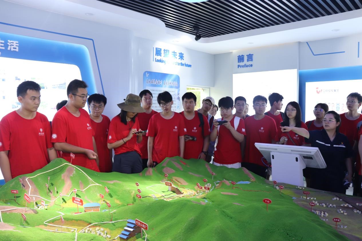 下午,实践团来到江西漂塘钨业有限公司,它地处"世界钨都"大余县境内。钨矿发现于1918年,1954年8月由西华山钨矿漂塘分场成立漂塘钨矿,2009年6月26日矿山依法实施政策性关闭破产,重组成立江西漂塘钨业有限公司,隶属江西业控股集团有限公司。实践团通过参观和体验,深入了解钨业生产相关的历史发展和流程技术。在公司总部,在工作人员的带领和解说下,同学们了解了公司发展的历史、前景和公司系列建设,同时在展示厅欣赏了钨业相关矿物,对钨业有了进一步认识。