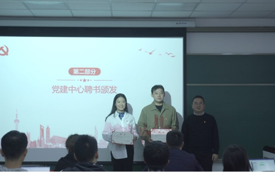 会上还进行了学生党建中心主任团及负责人的聘书颁发仪式,并合影留念。