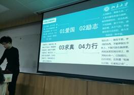师生座谈会上的讲话,介绍了座谈会的背景,对讲话的内容进行了详细解读,提炼出爱国、励志、求真、力行四方面的讲话精神。该讲话体现了习近平主席对北大学子的殷切希望,我们应该学习讲话精神,响应时代号召,投身社会建设,争做时代代言人。