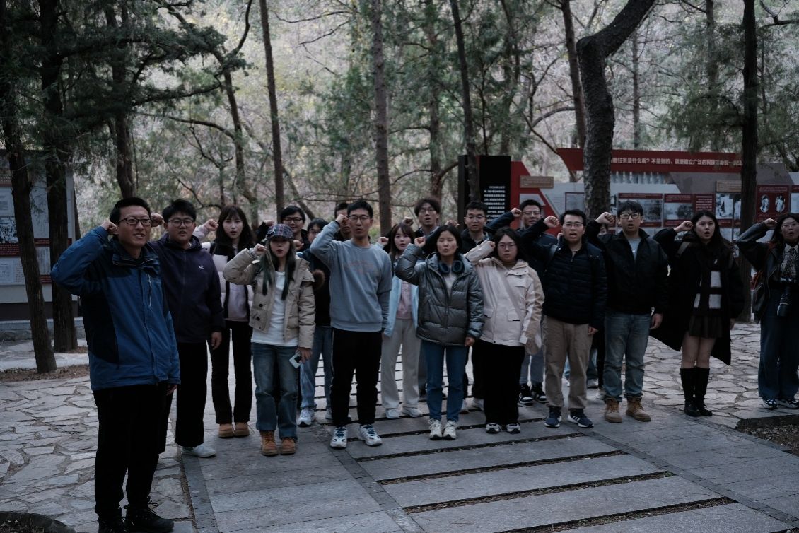 追寻红色印记,重温峥嵘岁月。在“一二·九”运动纪念亭前,岩矿、材料博士生党支部副书记常鹤翔在现场讲述了这段历史,书记薛泽润带领全体党员重温入党誓词。铮铮誓言,回荡林间,传递出不忘初心、牢记使命的坚定信念。同志们认真参观纪念亭、石刻与题词,通过一幅幅历史画面与实物陈列,深刻体悟那段青年学子为民族存亡奋起抗争的壮烈岁月,感受爱国、奉献、担当的精神力量在新时代的延续与召唤。